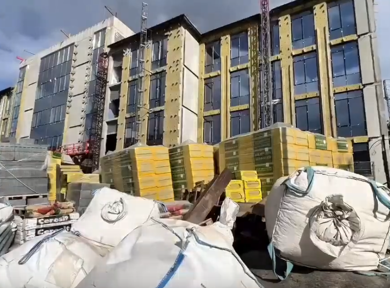 На стройке в Минске обрушилась мобильная платформа с рабочими — видео