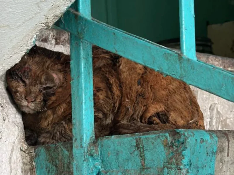 Говорят, что в прошлом году эту кошку погибшая в огне хозяйка выбросила с 7‑го этажа. Во время пожара оттуда прыгнул сын женщины и разбился.