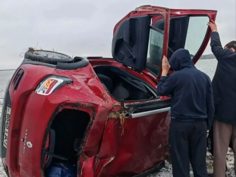 Александр Солодуха-младший опубликовал в соцсетях фото перевернутого красного Renault Sandero, рядом с которым валяется букет в розово-зеленой обертке.