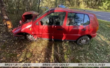 Водитель VW уснул за рулем и врезался в дерево