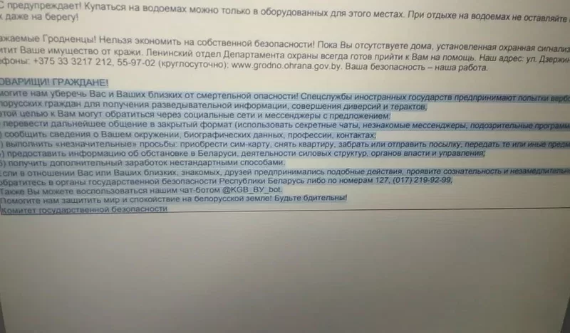 Кампанию устрашения белорусов лукашенковские спецслужбы ведут даже через счета за коммунальные услуги. Гродненский телеграм-канал, посвященный задержаниям и судам в этом регионе, опубликовал фотокопию такой бумаги.