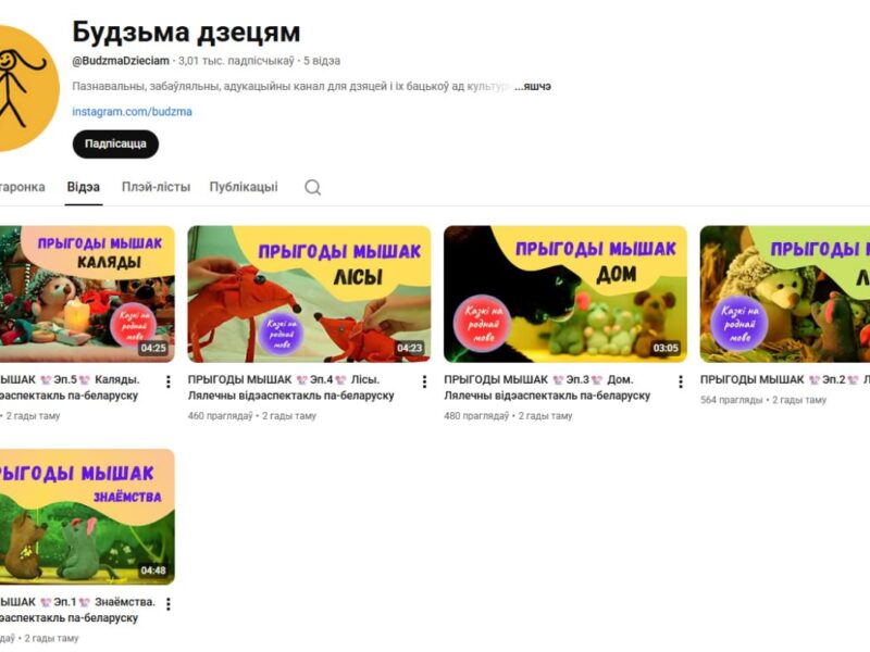Суд Пружанского района признал «экстремистскими материалами» ютуб-канал «Будзьма дзецям». На канале опубликовано пять частей детского кукольного театра на белjрусском языке «Прыгоды мышак».