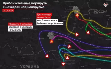 В Беларусь за ночь залетели не менее 8 шахедов. Один из них сбила ПВО России