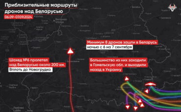 Минимум 8 дронов зашли ночью в Беларусь, один находился в 70 км от границы с Литвой — «Гаюн»
